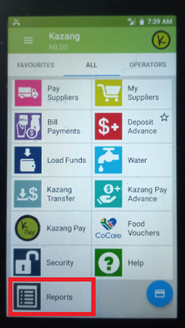 1) The vendor will go to the main menu on the vending screen and select REPORTS