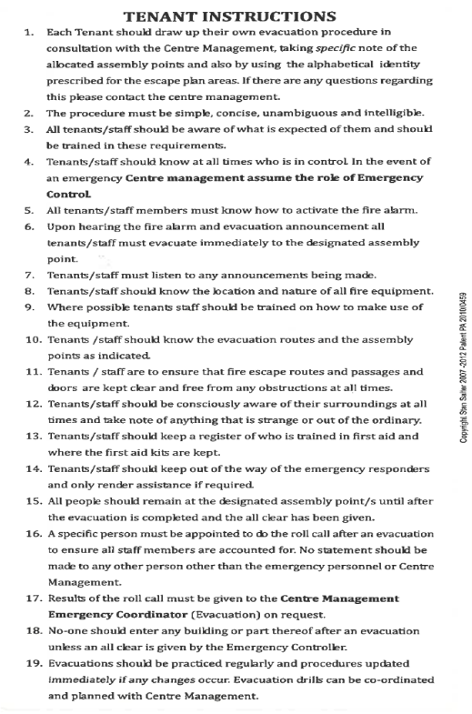 Cape Town Office Evacuation plan for Sable Square