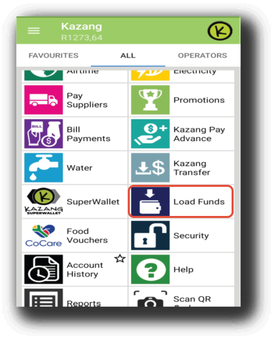 1. Select Load Funds on the main menu.