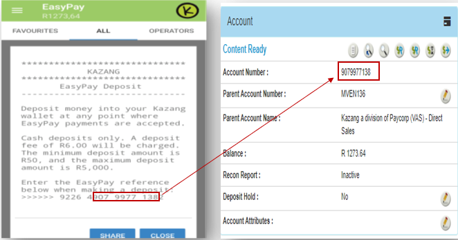 The easypay reference number is shown below, with the Kazang waller reference number highlighted in the middle. You can use that highlighted on CR to get the vendor's account details or to make sure you're dealing with the right vendor.