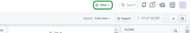 1) At the top of the Freshdesk Ticket screen, select the “New” button, then select “New Ticket”.
