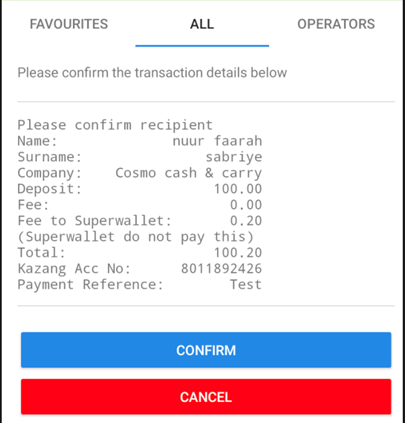 - To move money from a Superwallet to another Superwallet will be free of charge
