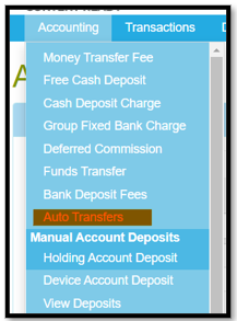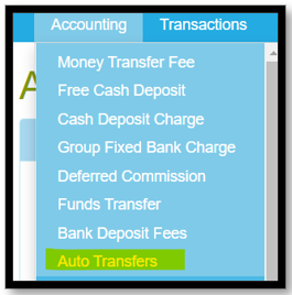 | Step 1 | Select the Accounting Tab followed by Auto Transfers | ![]() |