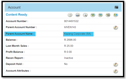 | Step 1 | Ensure the Parent Account has been added to the Kazang Corporate (SA) | Parent Account must always be: Kazang Corporate (SA) for setting up an Auto Transfer | ![]() |