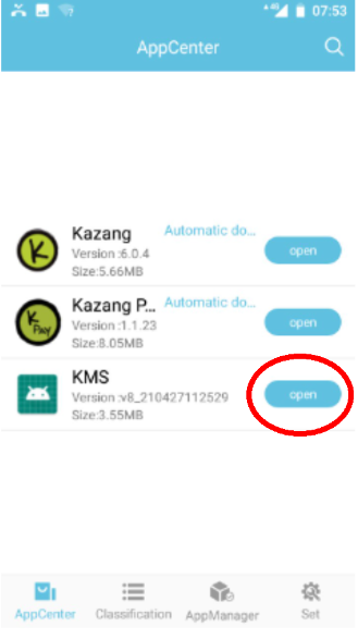 | Step 3 | Select either Open or Download next to the KMS app being displayed on the App Market | ![]() |