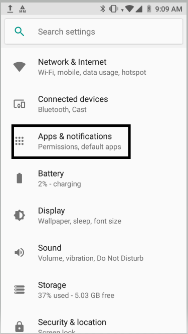 | Step 2 | Select the Apps & Notifications option | ![]() |