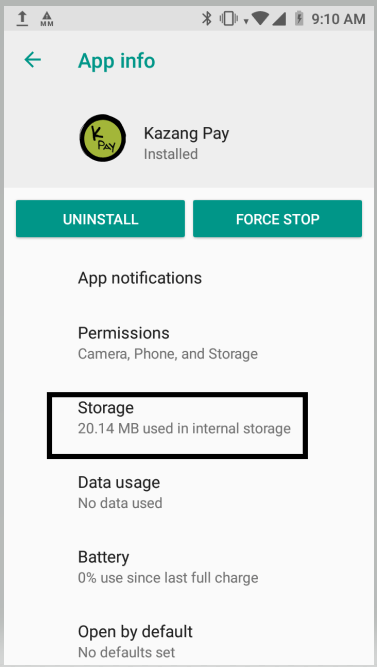 | Step 4 | Select the Storage option on the app details screen | ![]() |