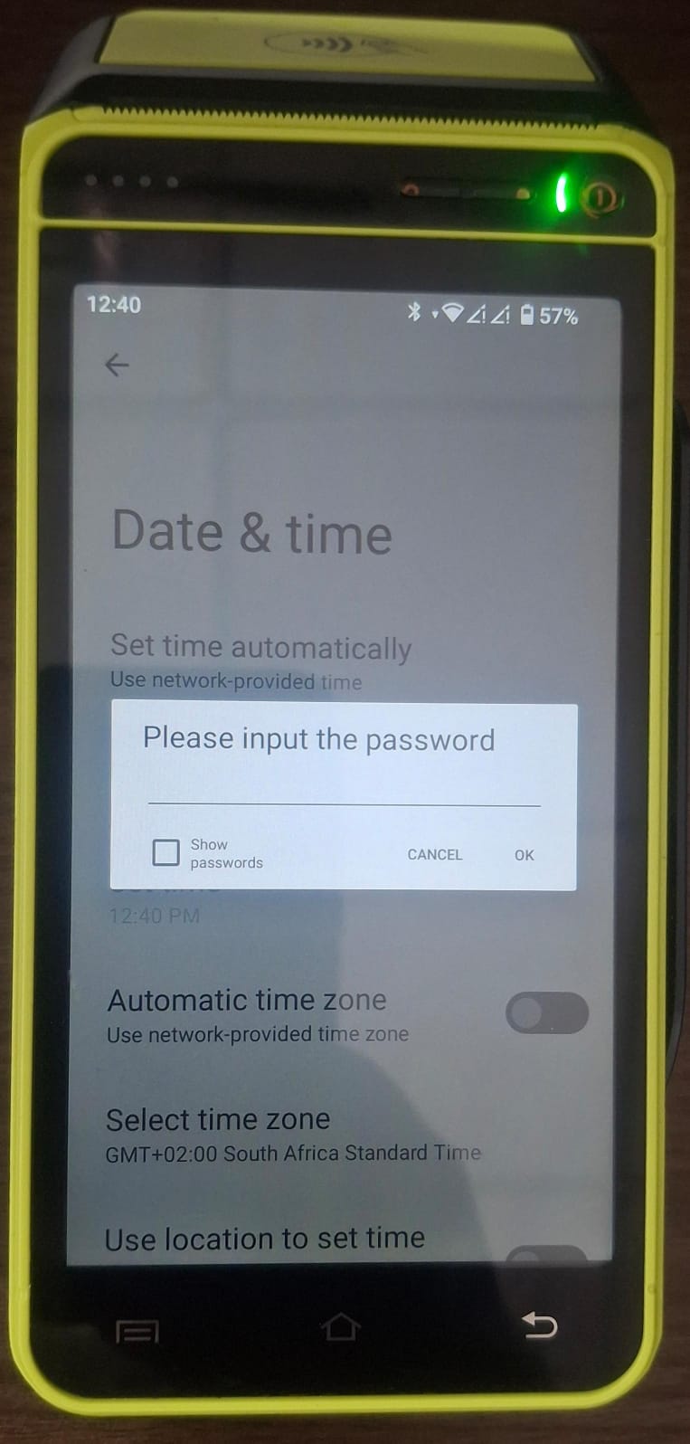 enter the last 6 digits of the device’s serial number as the password.Once the password is entered, press OK.
