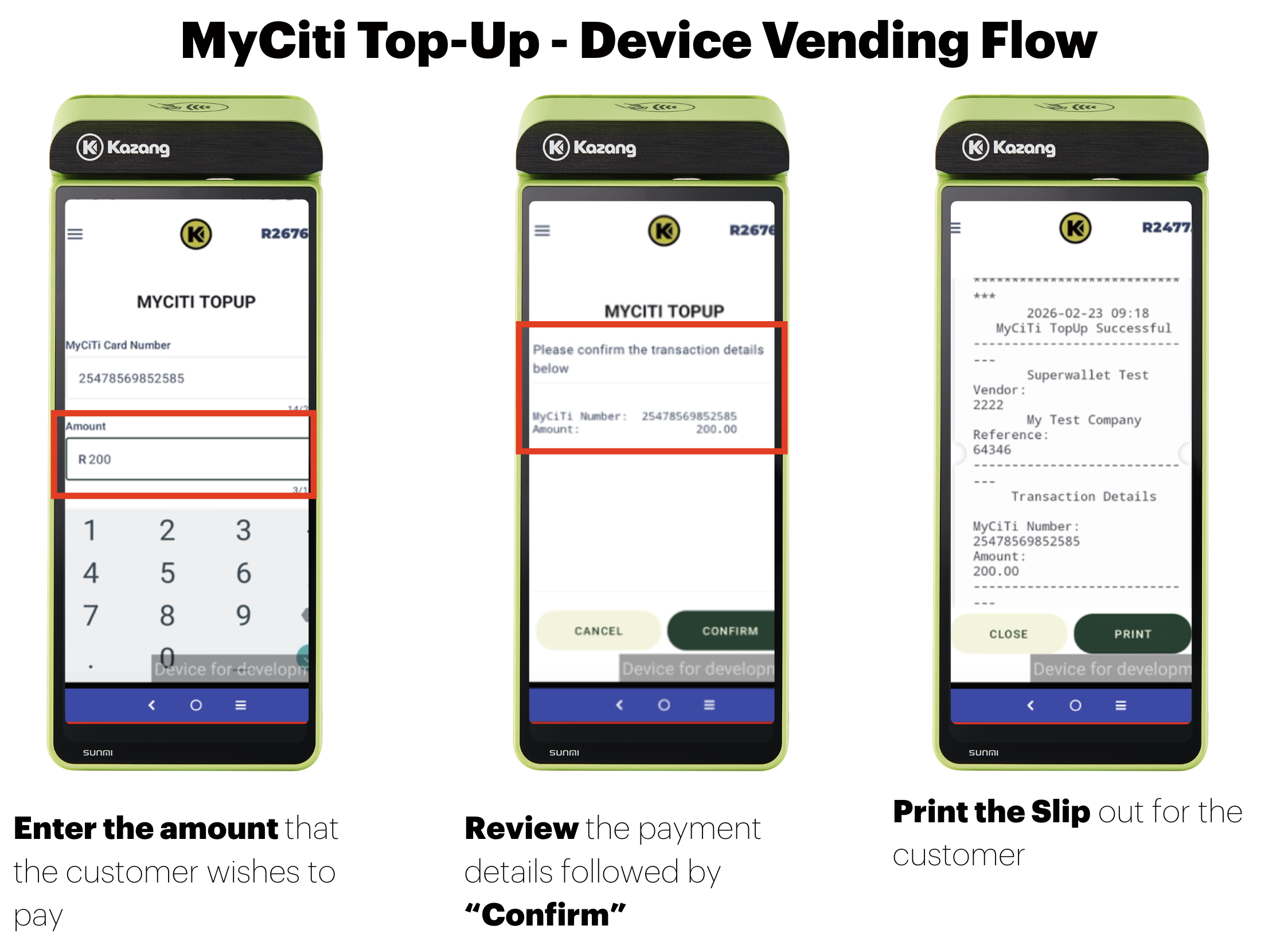 | Step 1 | Visit their nearest registered Kazang vendor that supports MyCiti top-ups |