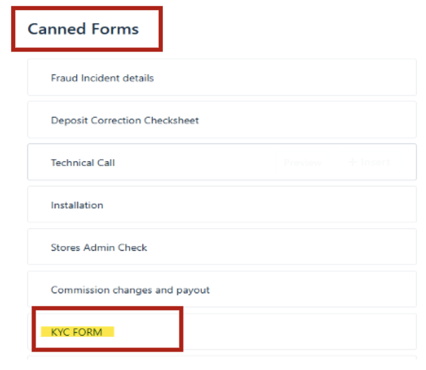 | Step 1 | Select the KYC Form from the Canned Forms list on Freshdesk | ![]() |