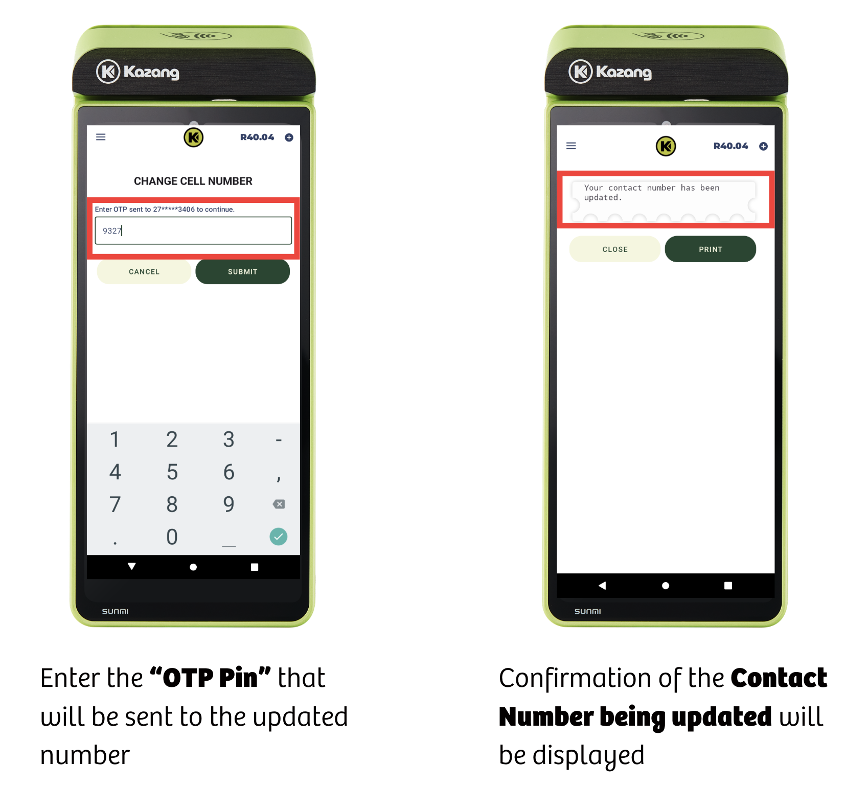 - Cell number change and OTP is for Owner accounts only not operator accounts