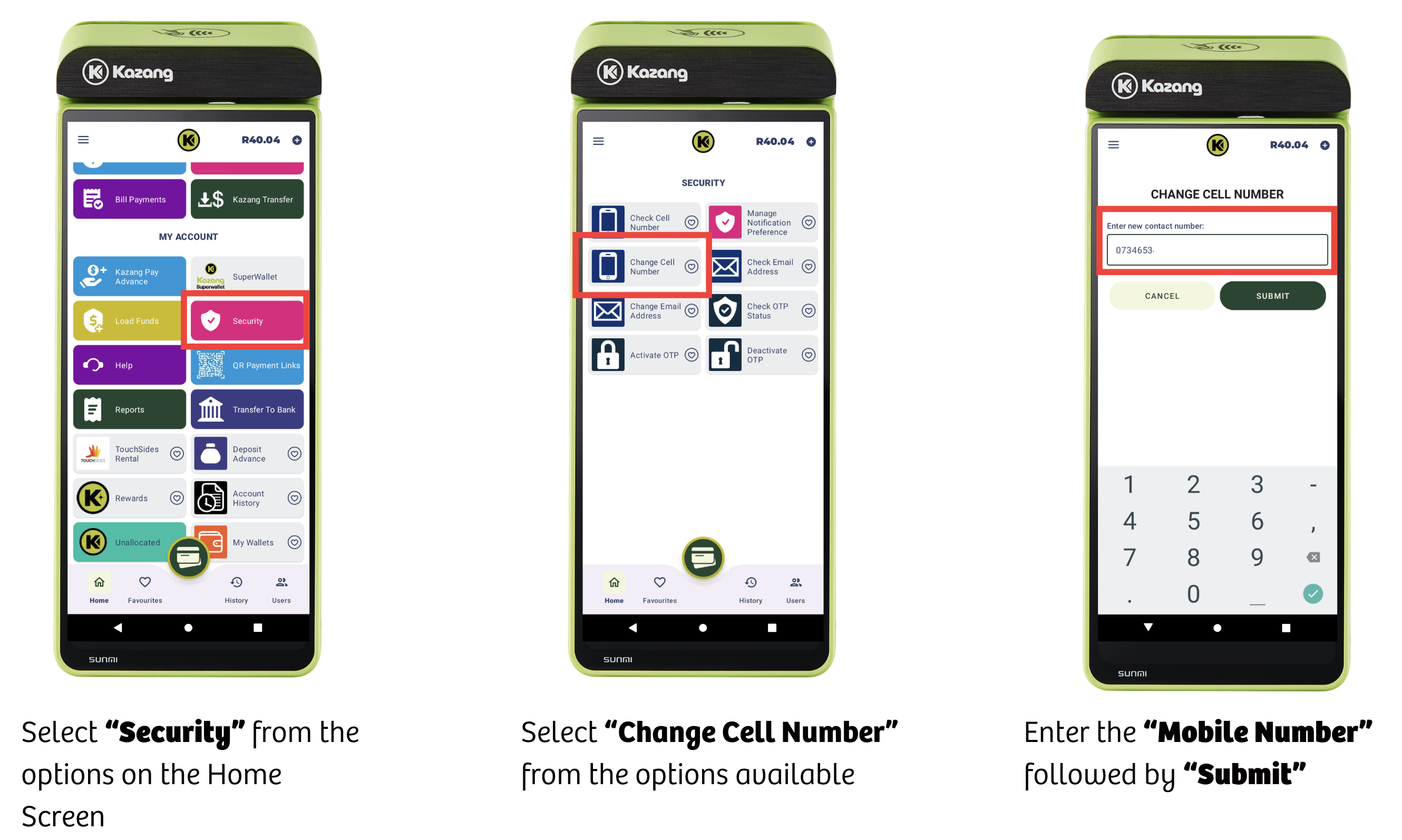 Vendors can update their mobile number directly from their device. This eliminates the time required to contact their respective Sales Rep/Agent or the Contact Centre to make this update to their account information.