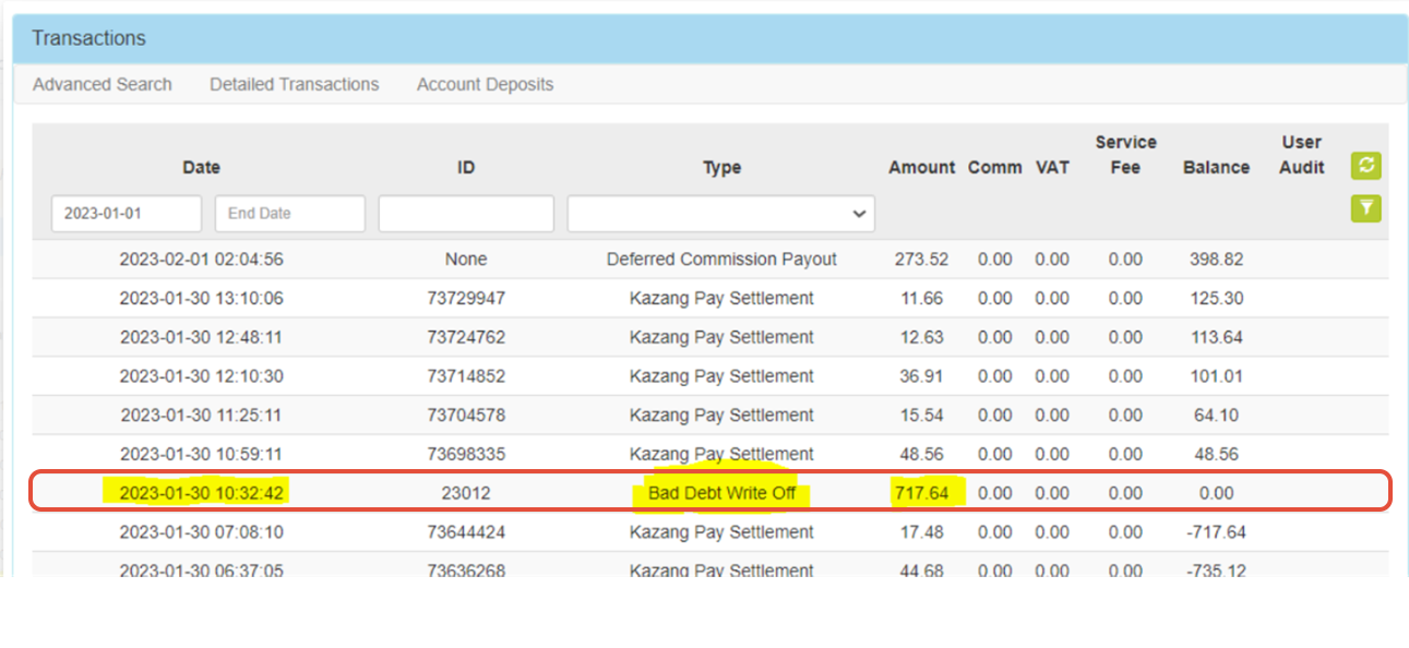 In these scenarios, we classify this as Bad Debt and the vendor's device will be subsequently locked which will lead to a stop in their trading. Outstanding balances that are not payed up by the vendor, can lead to their account being dormant.