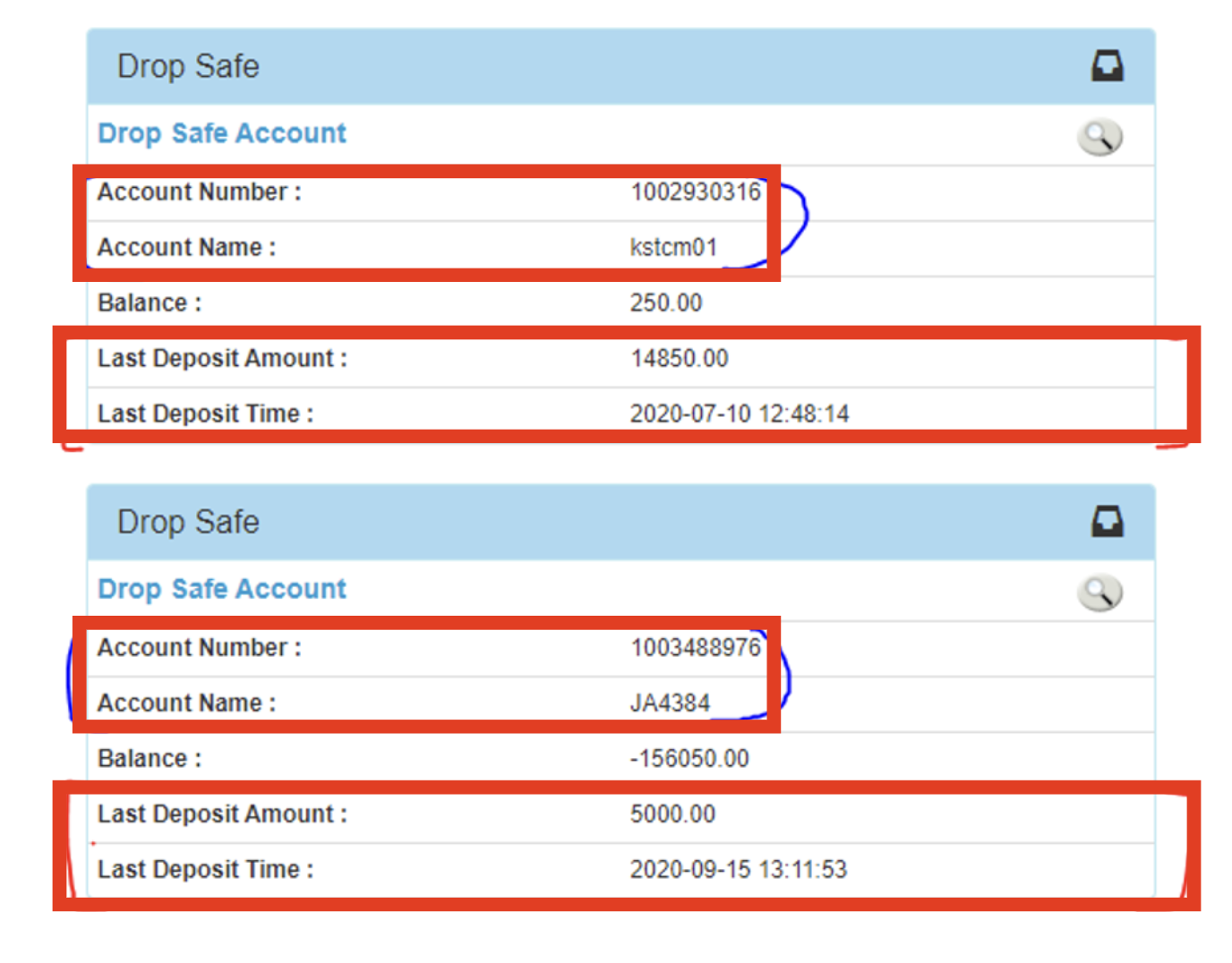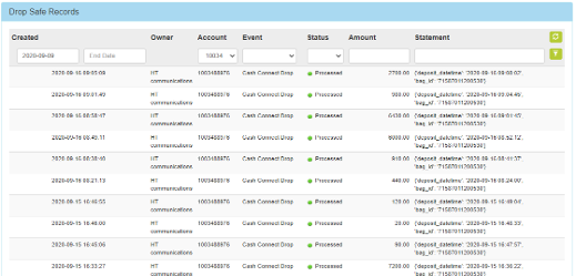 To review a more detailed list of the drop safe transaction, simply click on the Magnifying Glass icon: